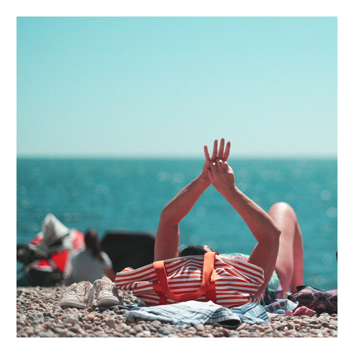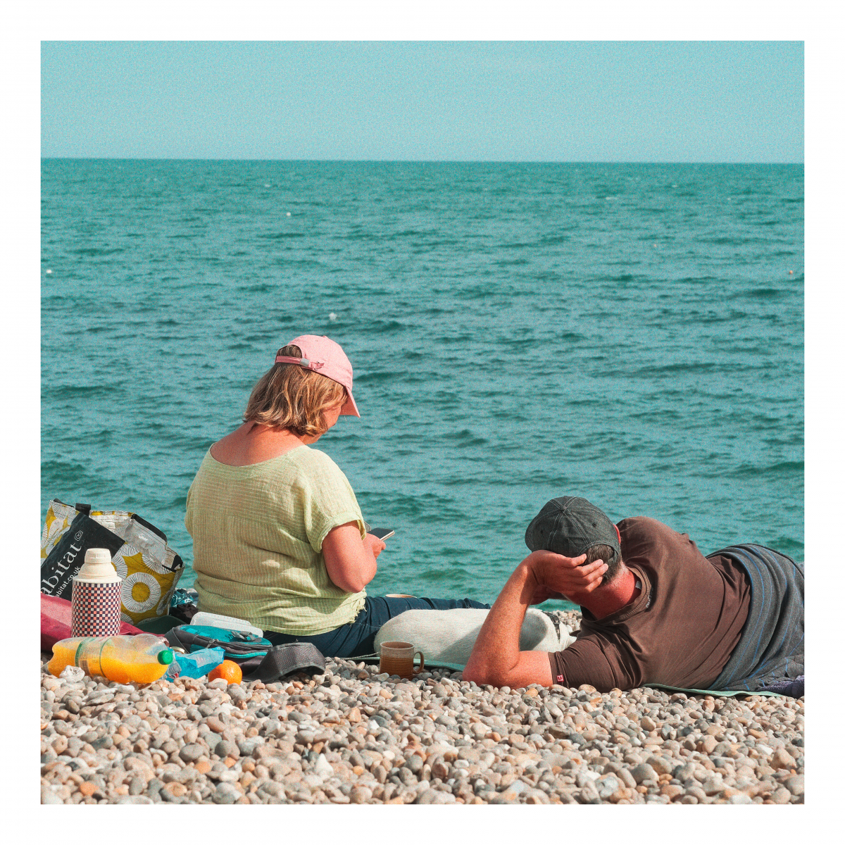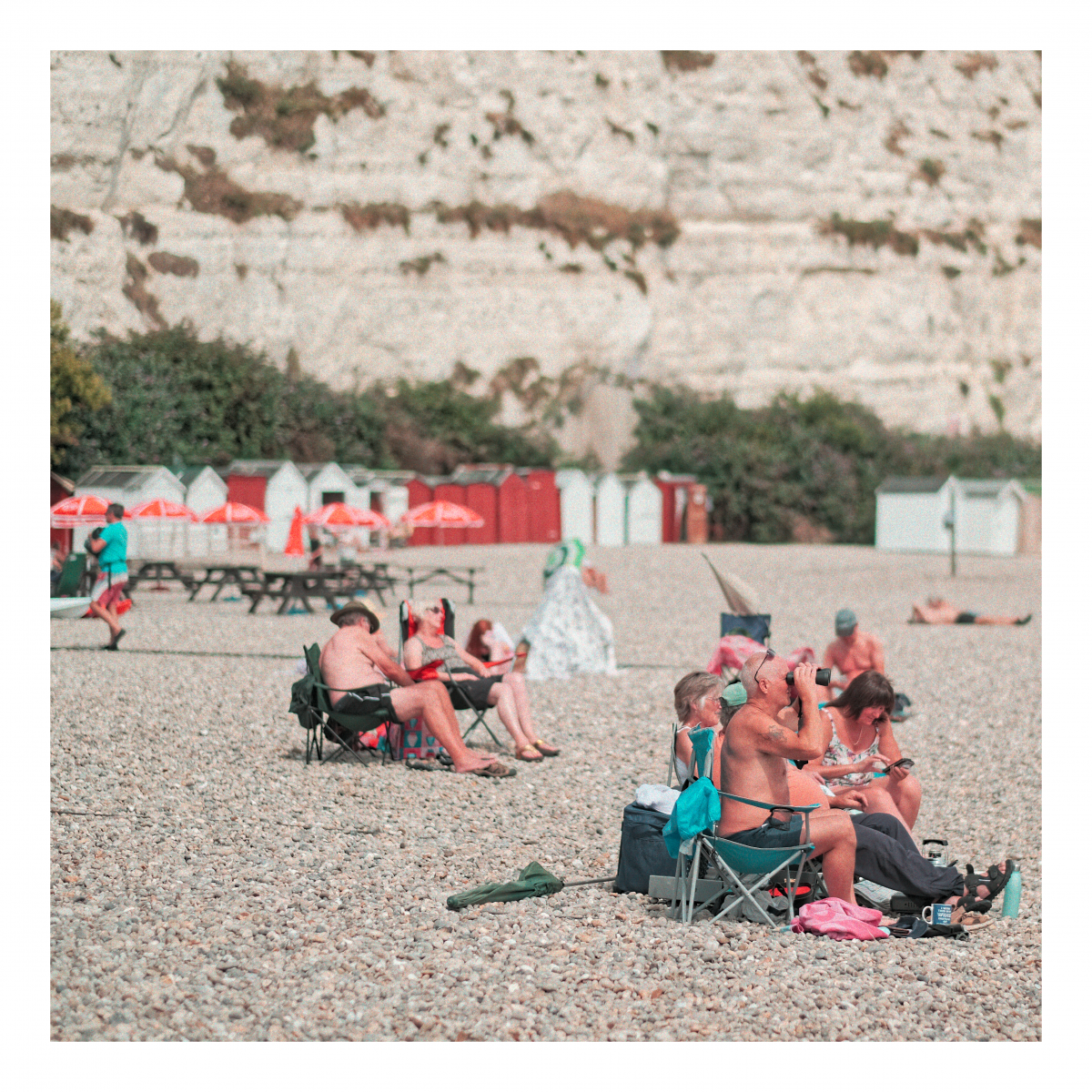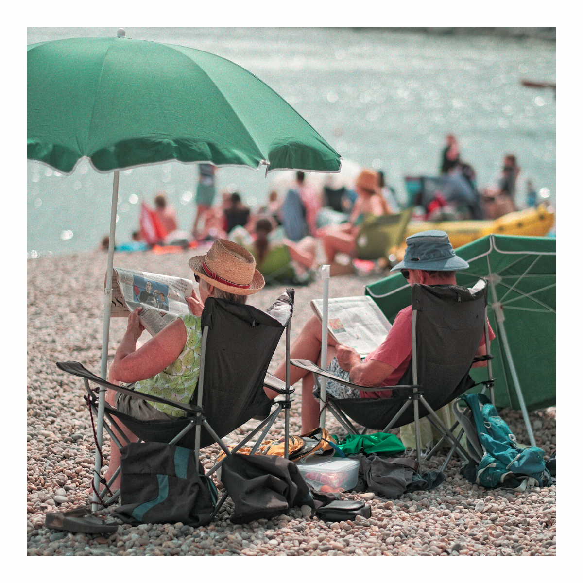 Beach Days I’ve always been fascinated by the sea and beach days in particular. People come for the day, conquer a piece of sad (or pebbles) and lay out their stall. My towel is my castle. The ritual of a day by the sea.