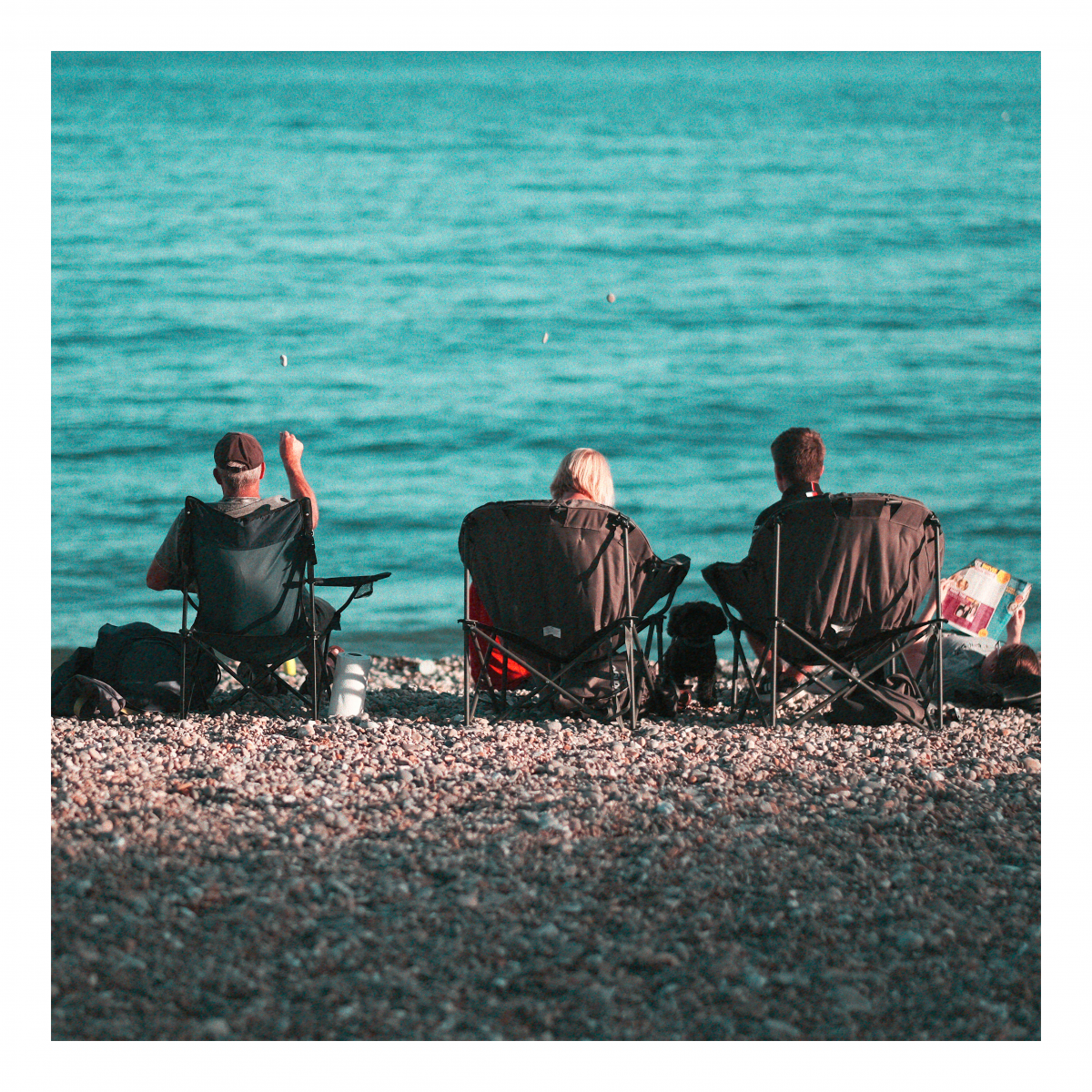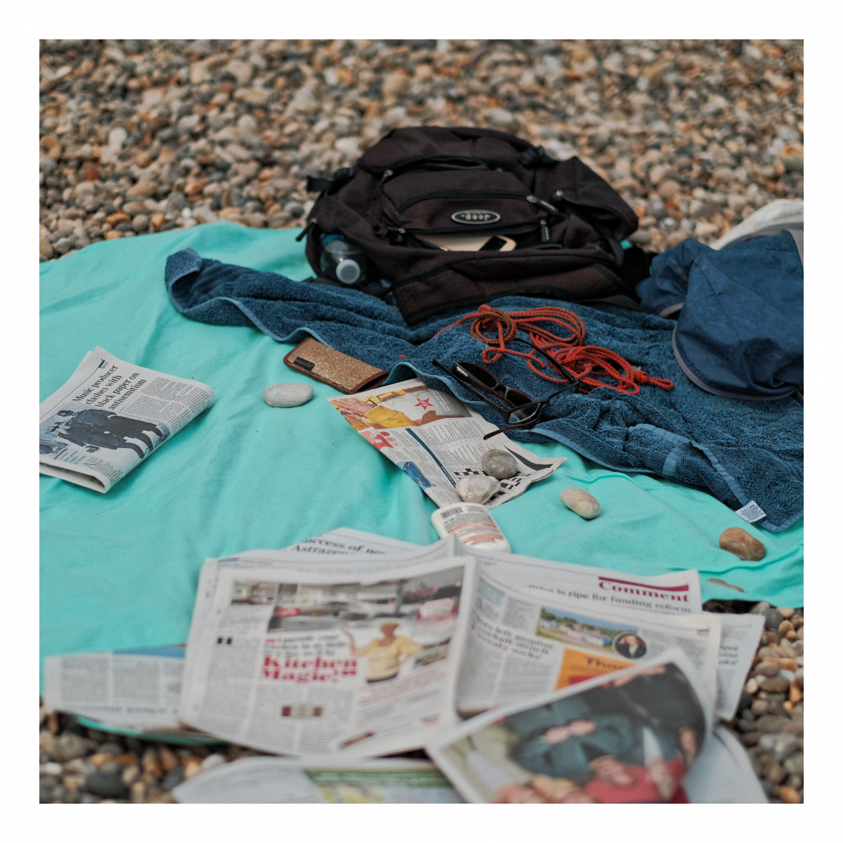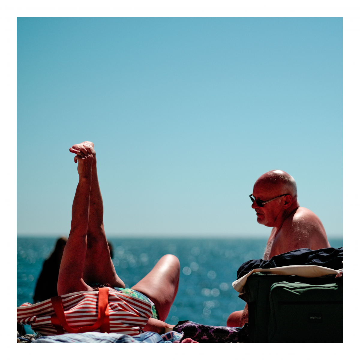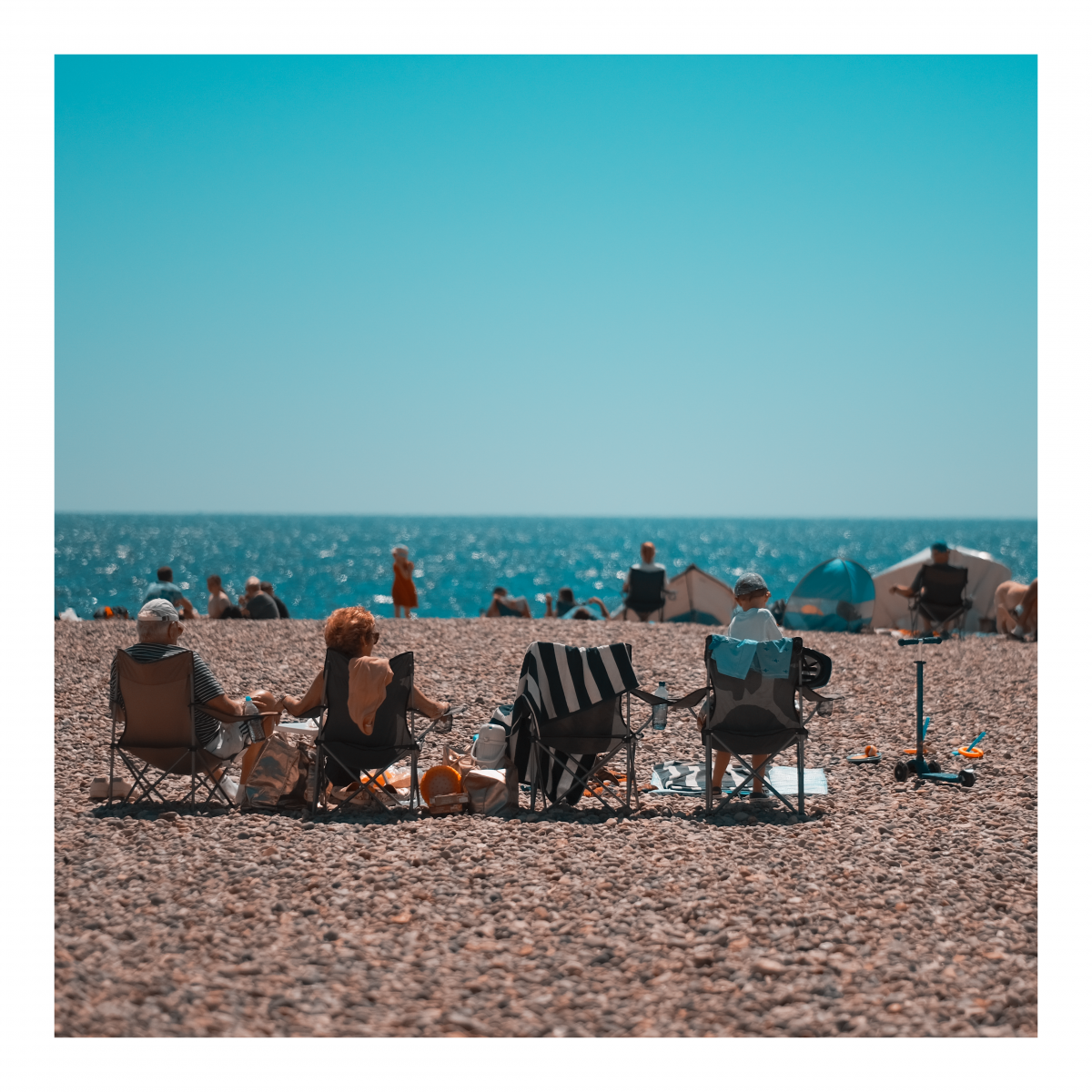 Beach Days I’ve always been fascinated by the sea and beach days in particular. People come for the day, conquer a piece of sad (or pebbles) and lay out their stall. My towel is my castle. The ritual of a day by the sea.